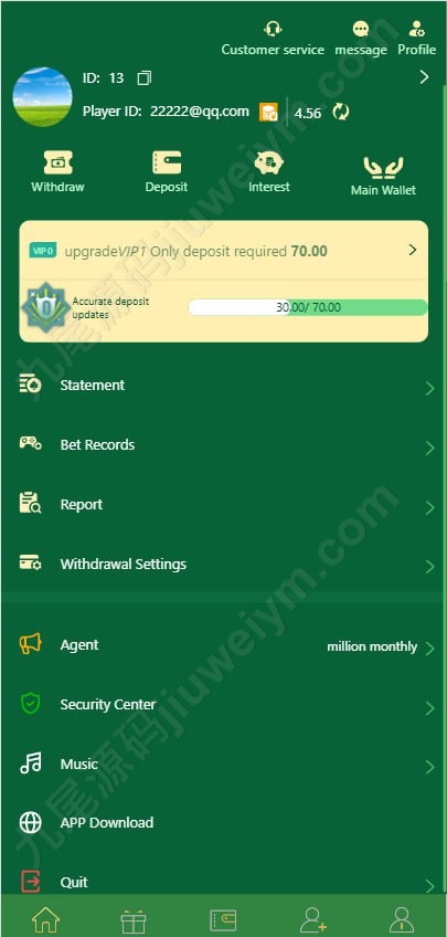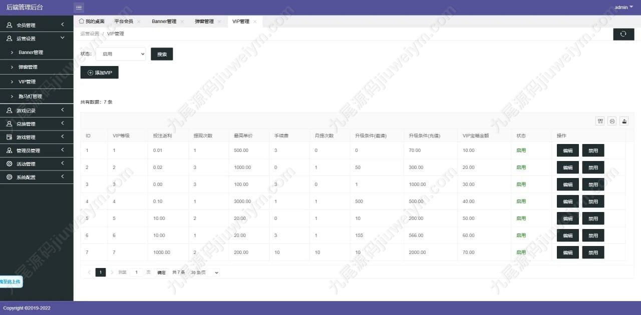 • 可配置特权项(专属客服、生日礼金、独立返水率)