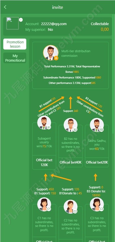 • 无限层级分佣逻辑,支持实时结算