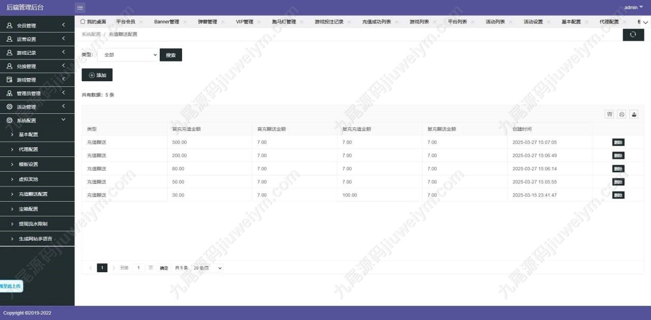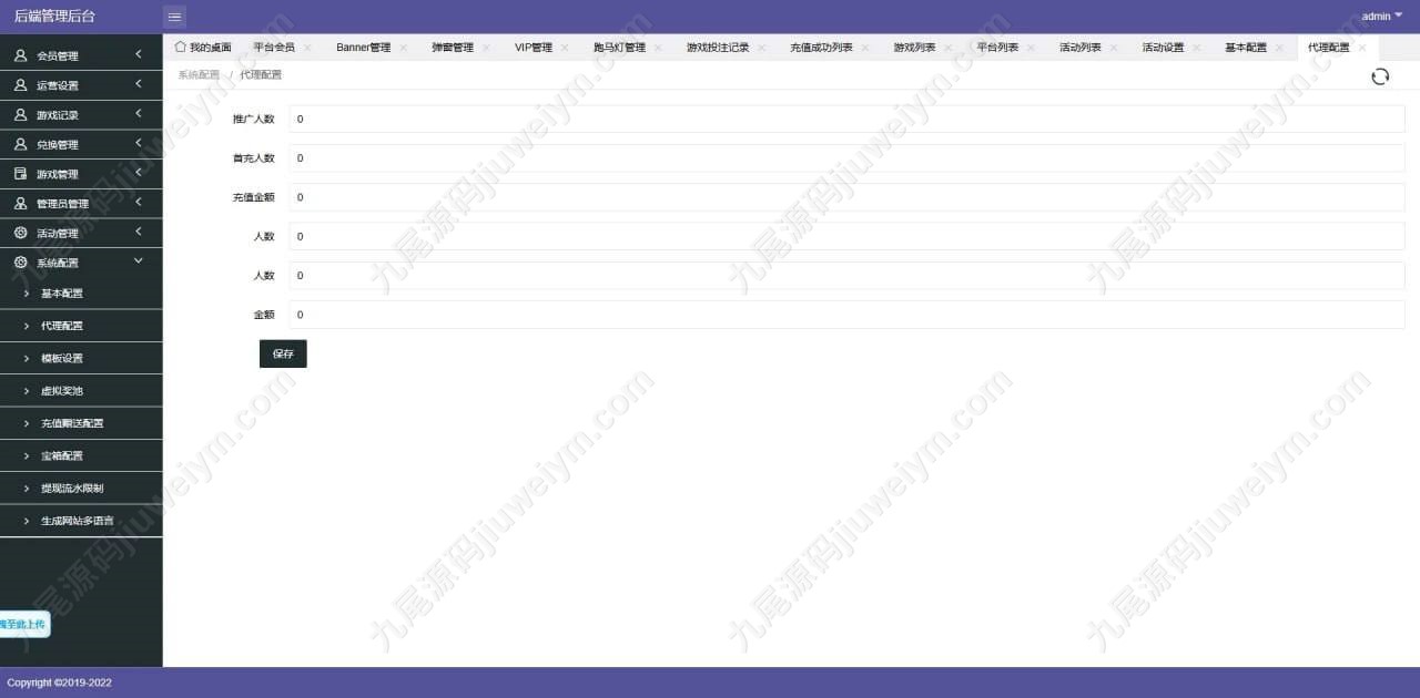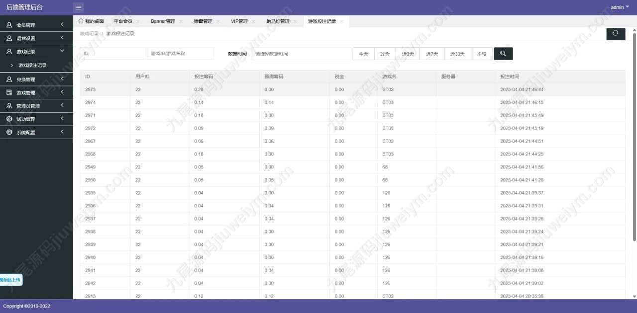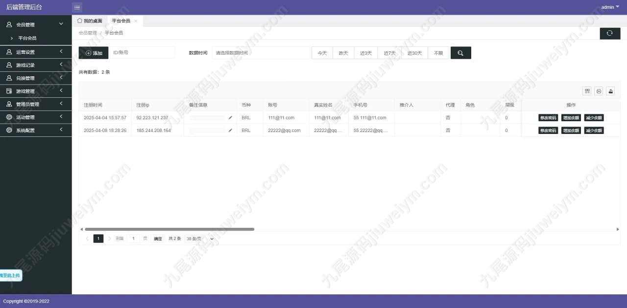 • 全功能后台,涵盖会员管理、财务、风控、活动、代理等