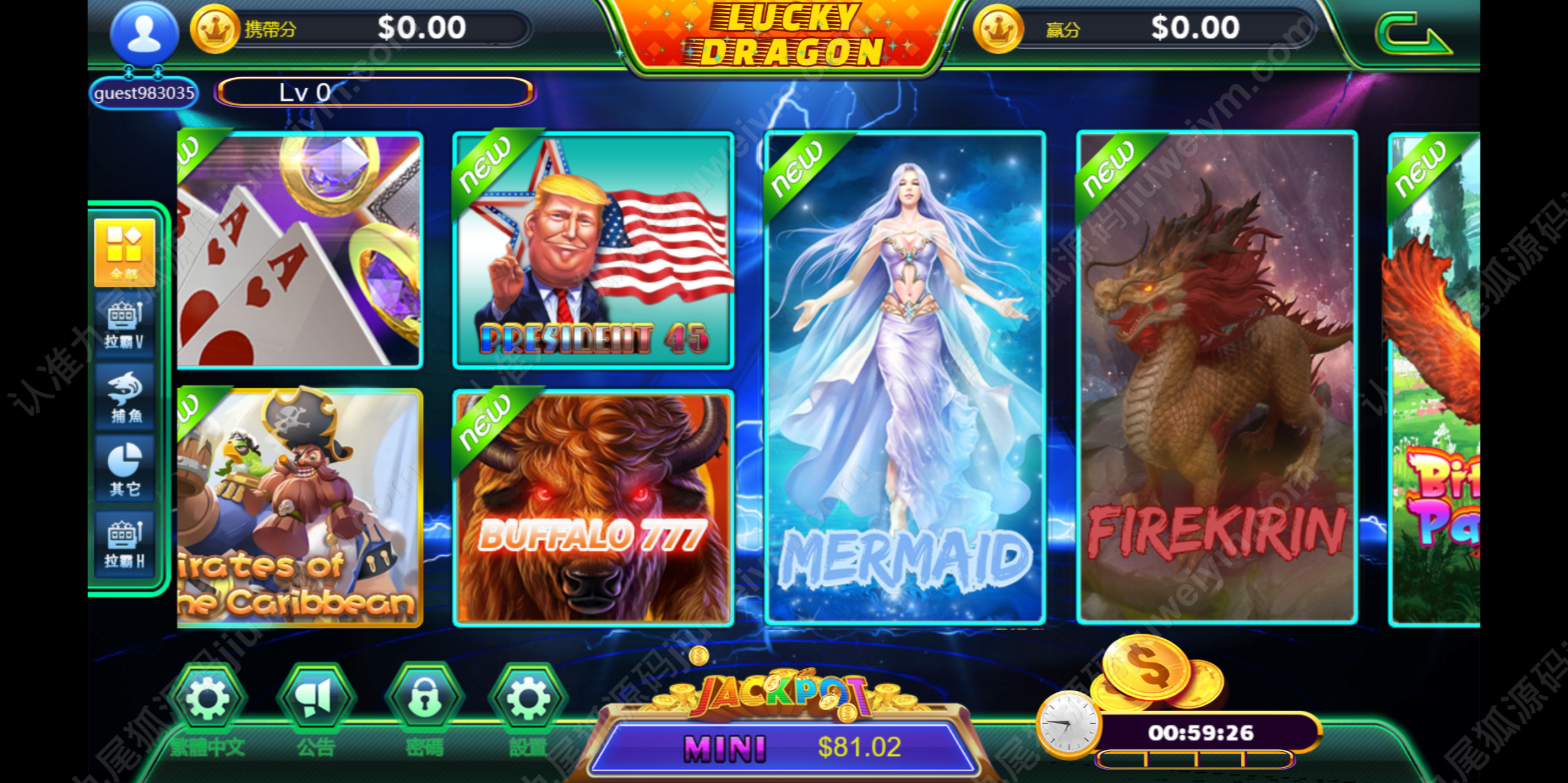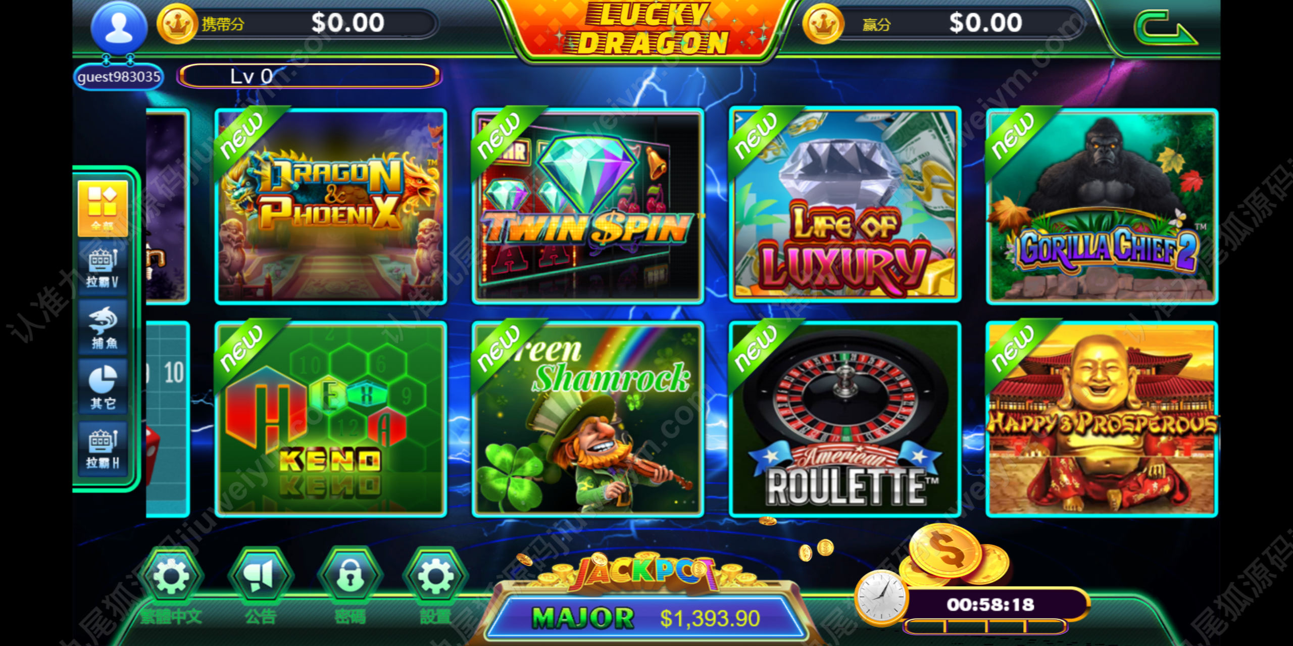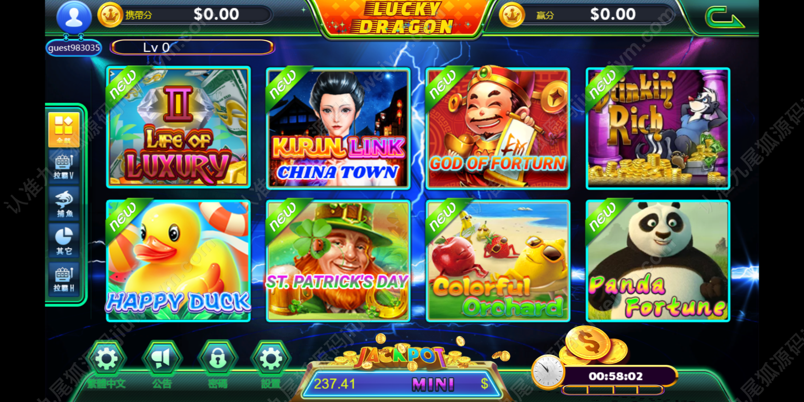系统集成超60款经典电玩游戏,涵盖Slots拉霸、水果机、街机、彩金类玩法,用户体验高,画面精致,游戏已调试完成可直接运营。