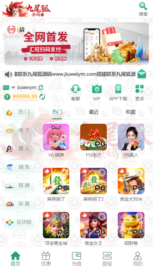 【汇旺娱乐综合盘源码】全端支持|PG娱乐城+真人视讯+棋牌捕鱼+体育竞猜+USDT充值|VIP会员体系|余额宝功能|接口齐全