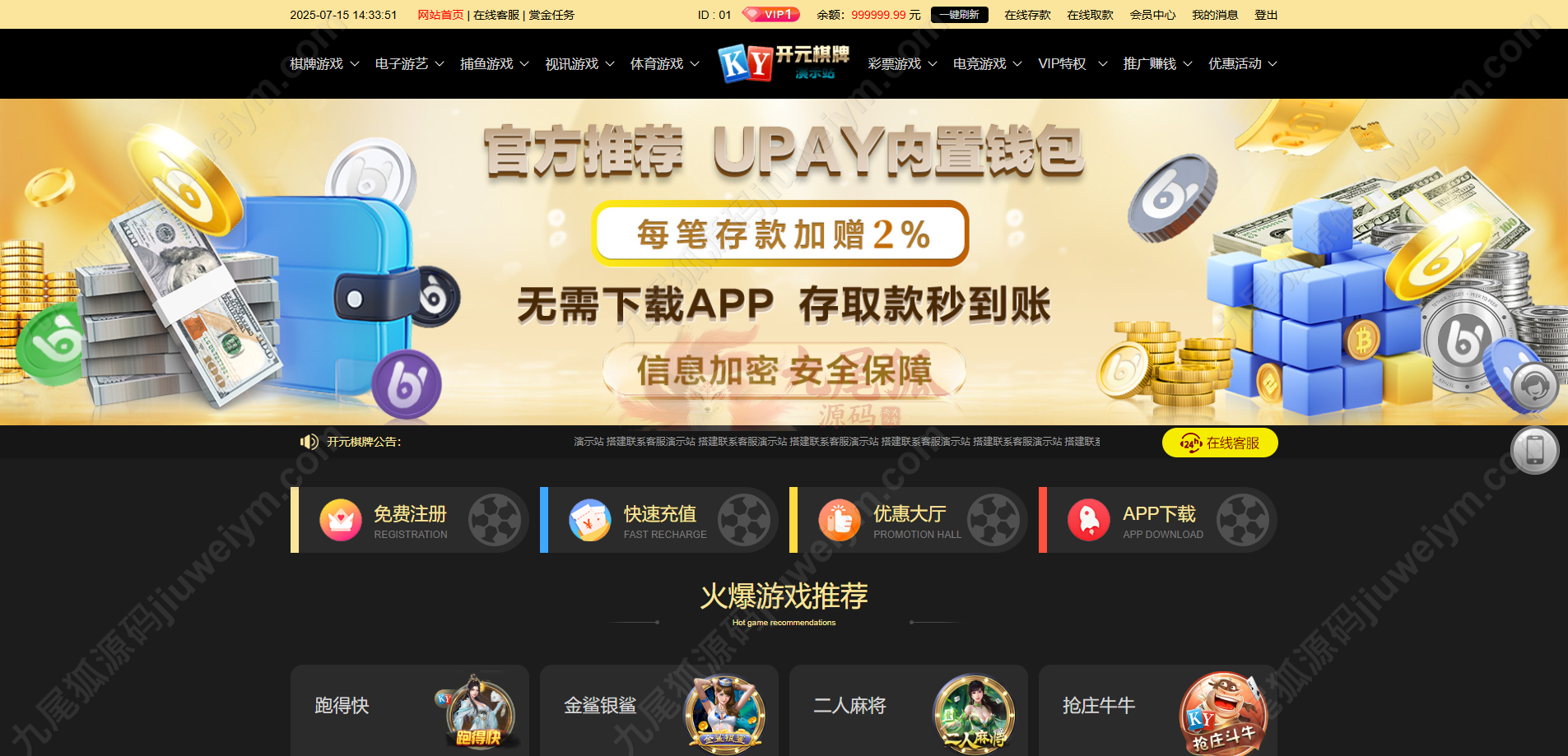 此套程序源自BOB棋牌系统底层架构,经过专业团队优化重构,整体UI严格对标“开元棋牌”官网风格,高度还原界面体验,运营级别配置,支持商用部署。