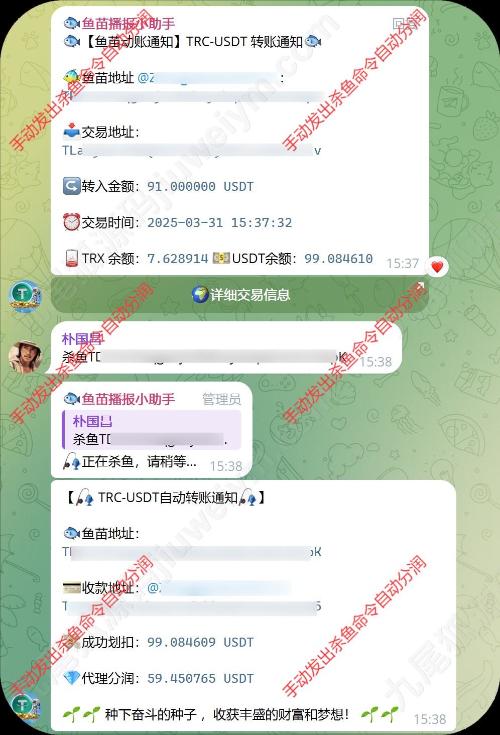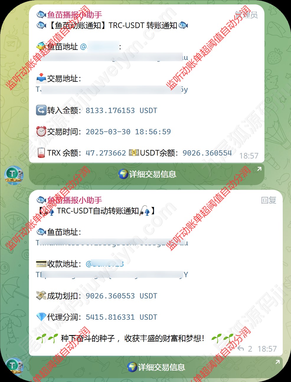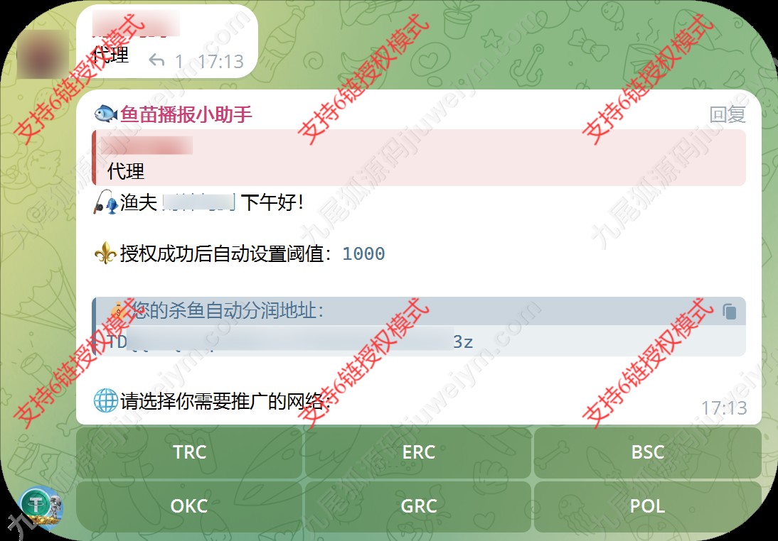 系统还集成TG群组实时提醒机制,鱼苗授权、动账、到账信息自动推送至Telegram群,便于管理与监控,玩法成熟,已实测可用。