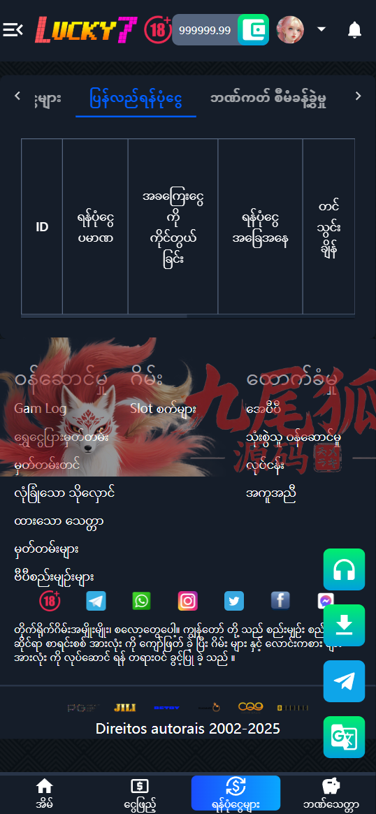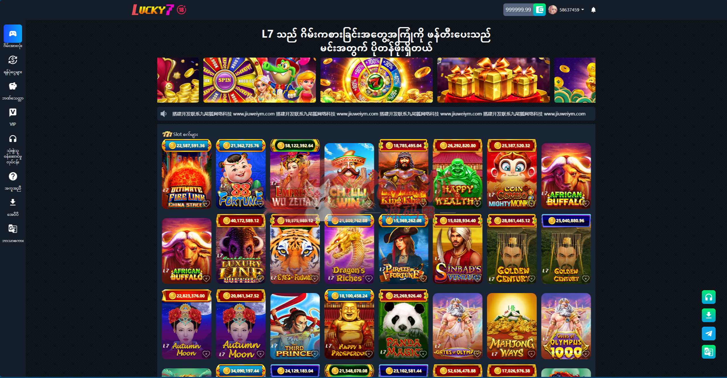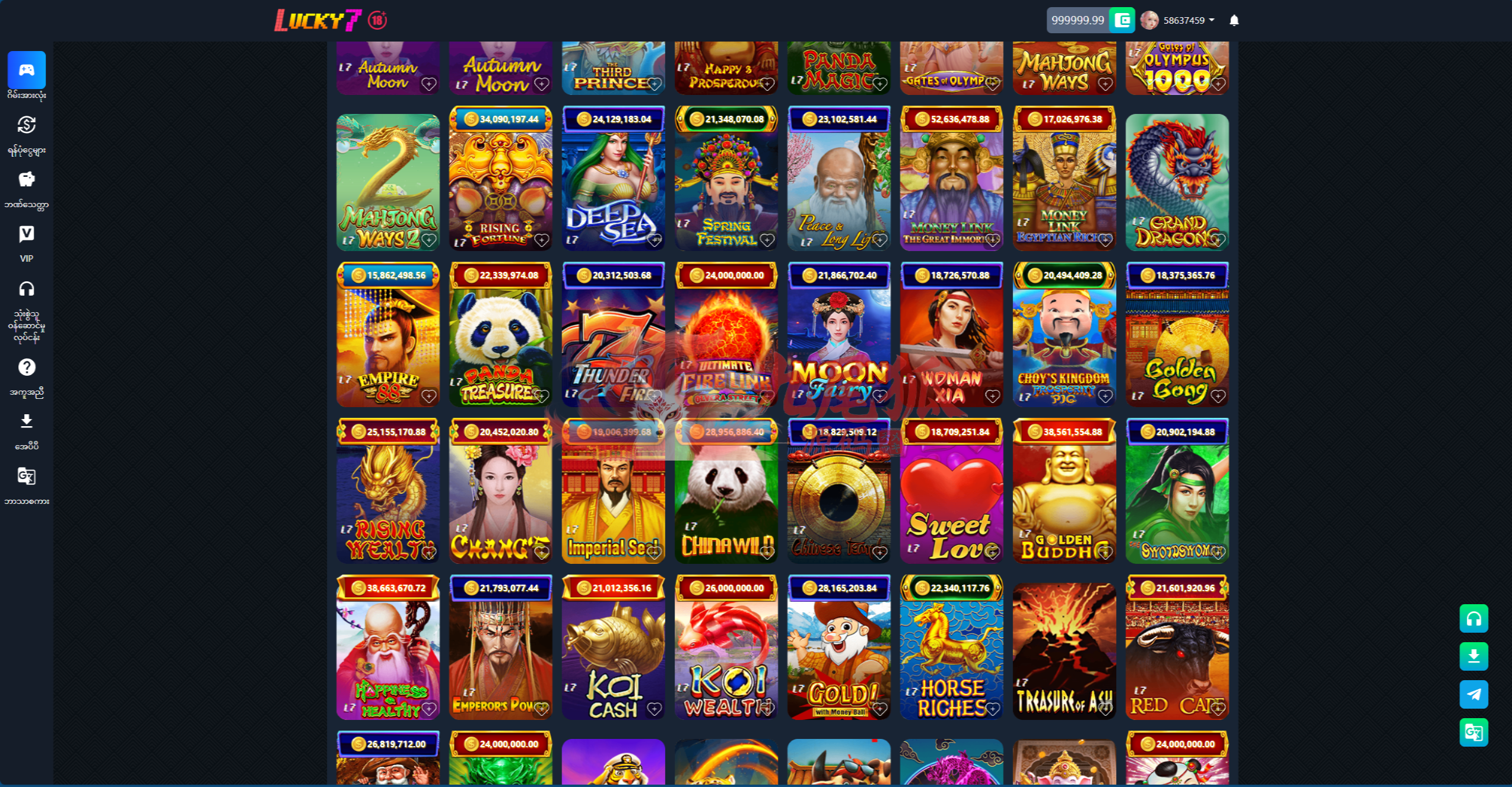 Lucky7 致力于为缅甸及海外用户提供 高品质的棋牌游戏源码。在这里,您可以体验到最受欢迎的缅甸传统游戏—— Shan Koe Mee,以及多款深受玩家喜爱的娱乐玩法,包括老虎机电玩城、拉霸游戏、捕鱼射击、赛车竞技、Bhugyi Festival、金骰子游戏、King of the Wild 等。