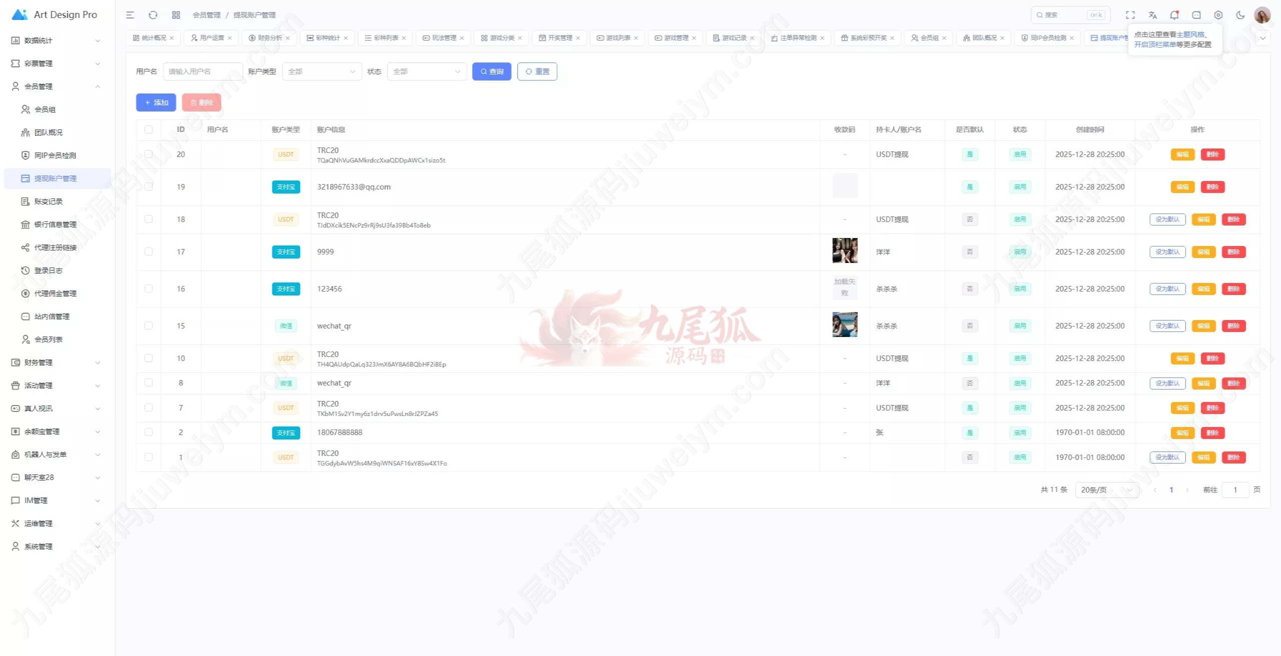 支付方面后台功能做得挺完善,USDT 在线支付已经集成好,同时也支持微信、支付宝充值方式,基本覆盖常见入款场景。懂行的拿到这套源码,自己接单、二次部署都很合适。